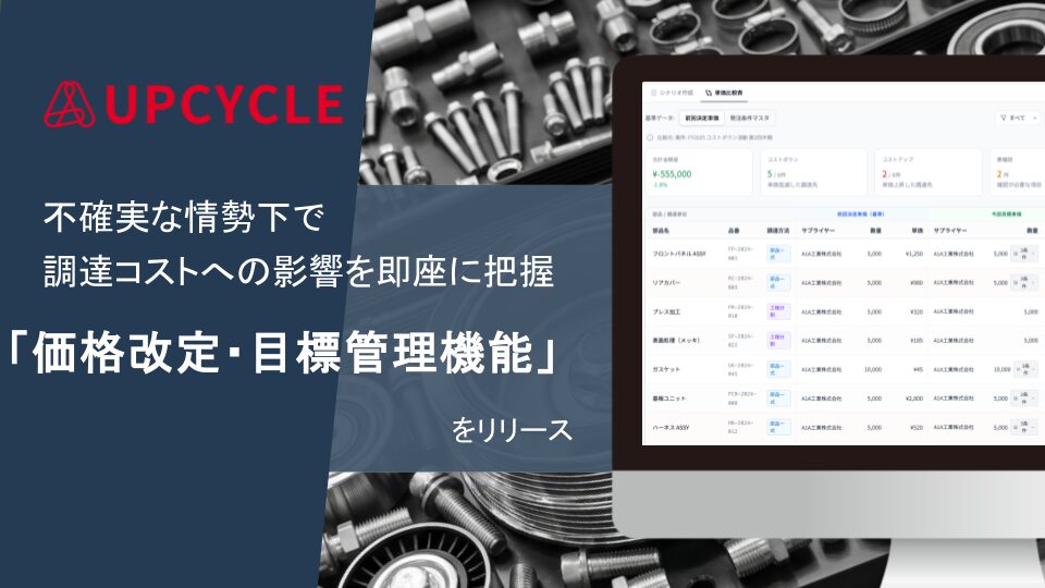 「UPCYCLE」は、多種多様なデータを集約・活用することで、調達・購買部門が「合理的な価格決定」や「部門横断での原価低減活動」を通して「能動的な調達」へ進化することを支援します。